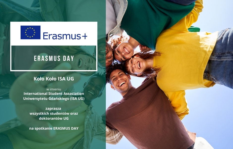 W imieniu Koła International Student Association Uniwersytetu Gdańskiego (ISA UG) serdecznie zapraszamy wszystkich studentów oraz doktorantów UG na wydarzenie ERASMUS DAY, organizowane przez Koło ISA UG.